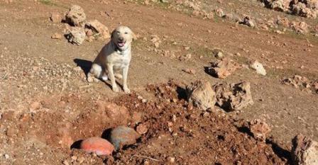 A bomb-sniffing dog in Turkey saved the lives of many yesterday after it found explosives weighing a 100 kg buried in the ground.