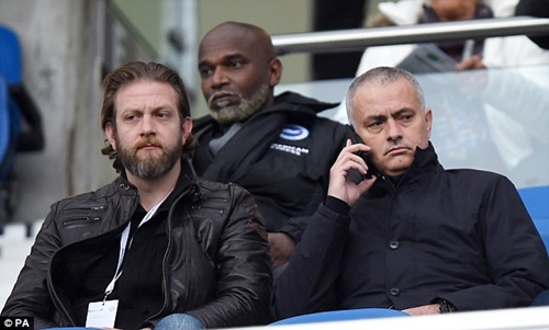 Former Chelsea boss, Jose Mourinho was pictured sitting in the stands at the Amex Stadium as a guest of his good friend, Aitor Karanka, who was his No 2 at Real Madrid for three years.